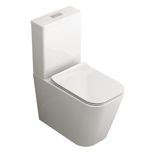 Pack inodoro cisterna baja. Incluye taza a suelo con salida dual (con tornillería), codo de conversión vertical, cisterna baja de alimentación base, mecanismo de alimentación base, tapa extra-plana con caída amortiguada (incluye herrajes). Ref 00525.