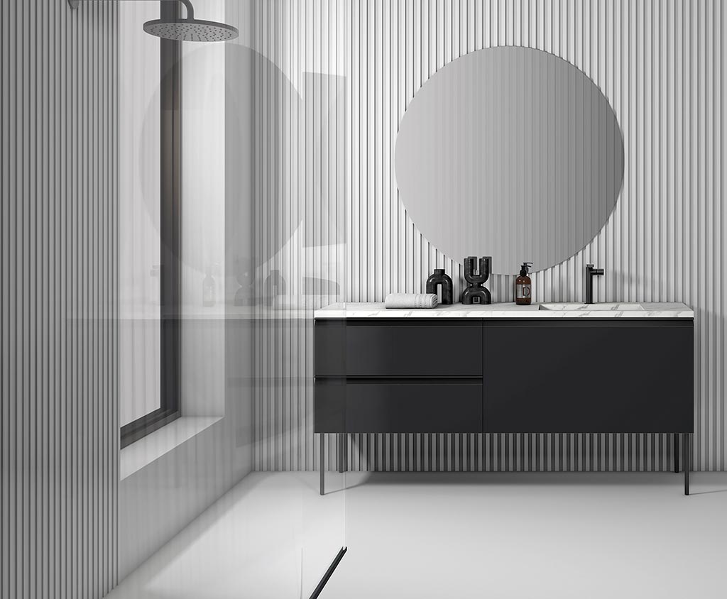 apariencia única. Composición modular, bajo lavabo 1 cajón y coqueta 2 cajones, diseñada para crear armonía además de funcionalidad en el espacio del baño.