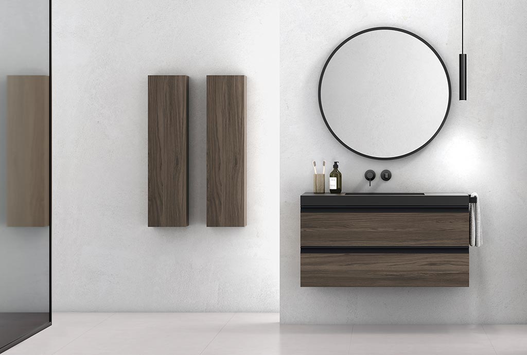 El mobiliario en acabado Arlux Selva y los tiradores Abby negros añaden calidez además de elegancia al espacio.