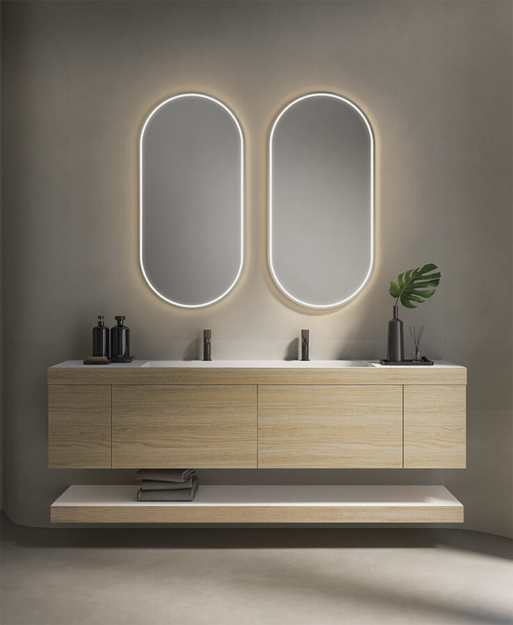 Espejos Naya marco arenado de 1 cm retroiluminados.
