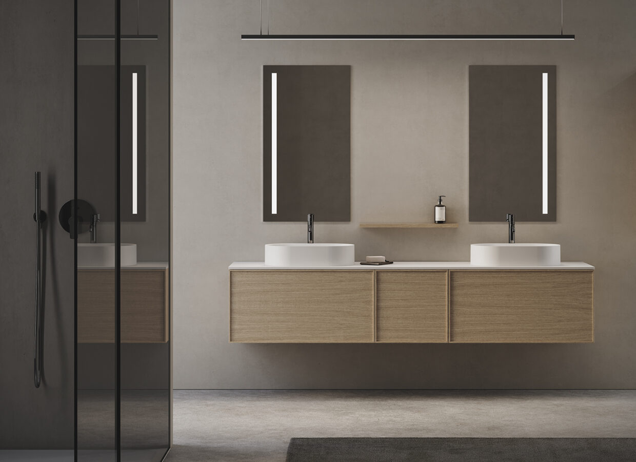 Encimera sin lavabo Durian Blanco y lavabos de posar Enna.